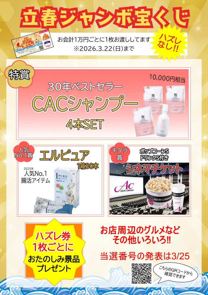 その他/最新情報 立春ジャンボくじ 景品をちょこっと発表 2026年2月12日 立春ジャンボくじの当選発表は 2026年3月25日(水)です。(時間は未定となります。) もうしばらく、おまちください🎊 kawaharayuki kawaharayuki の投稿をすべて表示